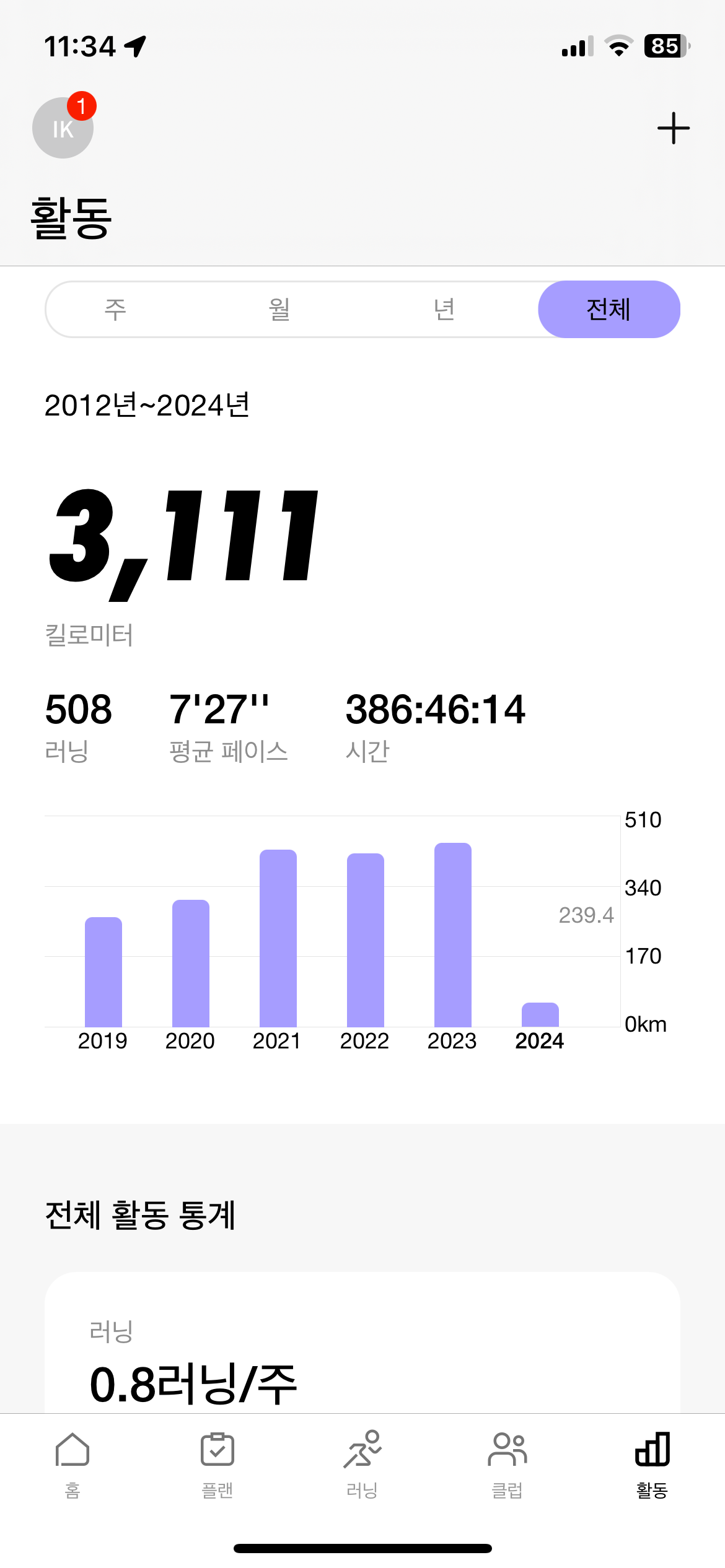 지금은.. 3,111km 를 뛰었으니.. 거의 1,550km를 4년동안 포러너 245와 함께 했다.
